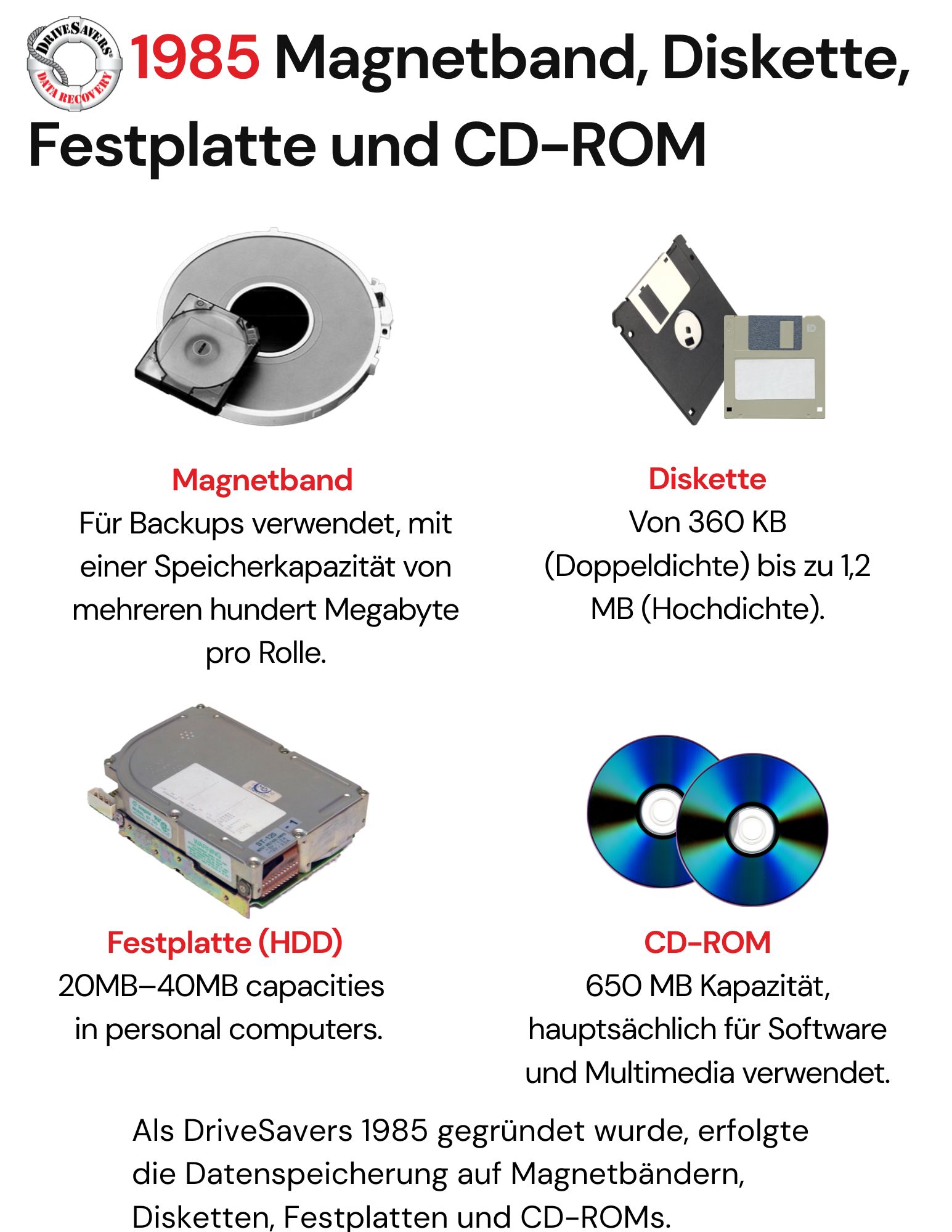 Zum 40-jährigen Jubiläum blicken wir auf diese bemerkenswerte Evolution zurück. Wir haben nicht nur Daten von nahezu jedem existierenden Format wiederhergestellt – wir waren hautnah dabei und haben diese Geschichte mitgestaltet.