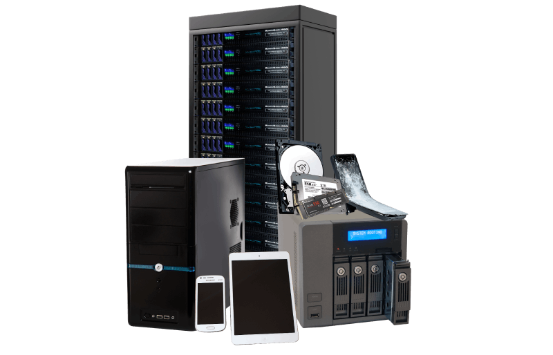 Phones, laptops, external drives, SD cards, solid-state drives, USB flash drives, and more—anything that stores digital information.