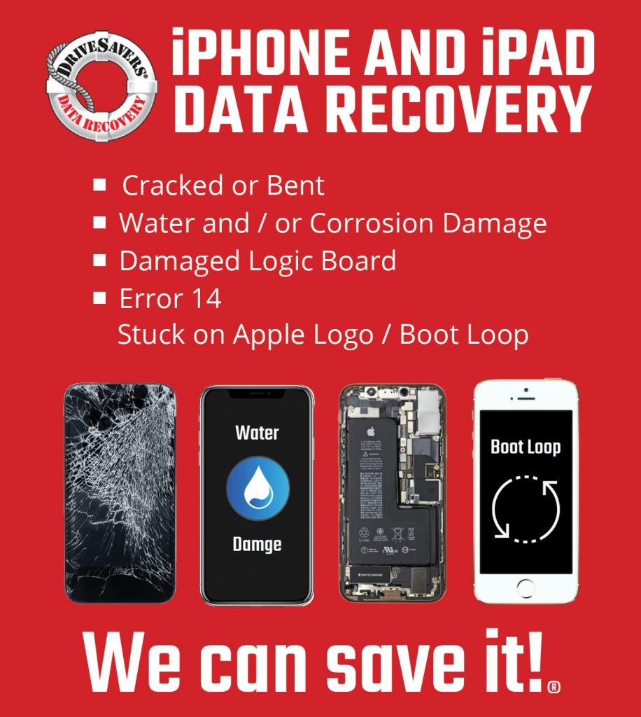 DriveSavers Data Recovery is a trusted leader in recovering data for all Apple products. DriveSavers is the Apple iPhone data recovery (and iPad!) experts and routinely recover data from iOS devices when others might deem them lost forever.