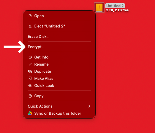 Si votre disque n'est pas formaté en APFS ou en Mac OS Étendu (journalisé, chiffré) , vous devrez peut-être le reformater d'abord à l'aide de l' utilitaire de disque before enabling encryption. As a reminder, we recommend that all of the steps in this article be performed on a new or empty drive.