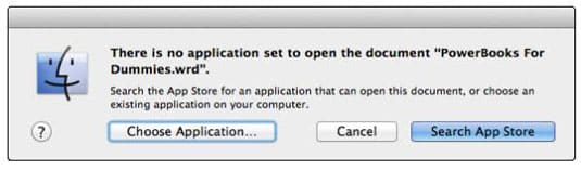 “There is no application set to open the document… Search the App Store for an application that can open this document, or choose an existing application on your computer.”